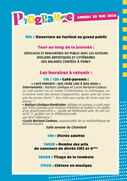 Programme du samedi 30 mai30 mars 2026Accueil Le programme complet du samedi 30 mai 2026, de 10 heures à 17 heures 30 :